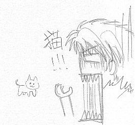 気絶しながらうわ言で「ネコ・・・ネコ・・・」と呟いてます。